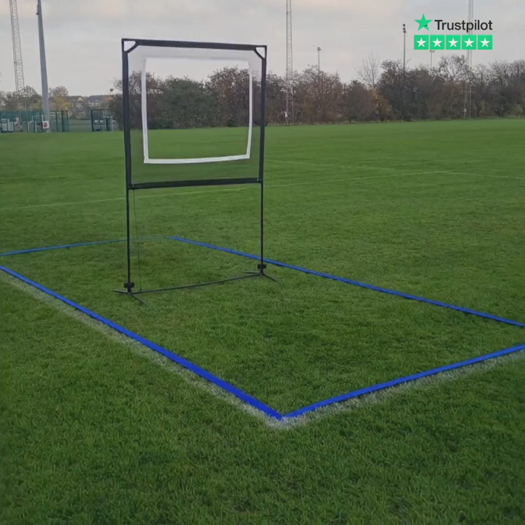 Det er samtidig markereret ved de centrale pløkker præcis hvor banens spillenet skal placeres, nemmere gøres det ikke!